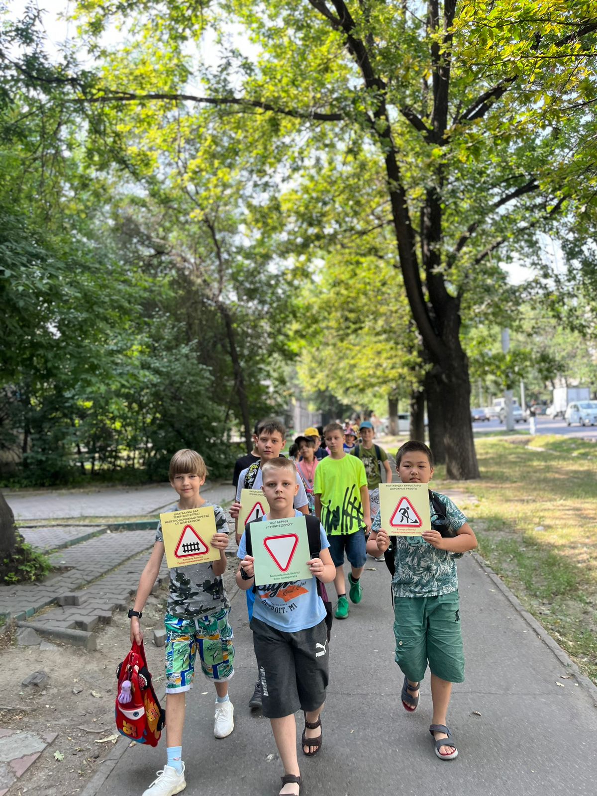 В пришкольном лагере «Солнышко» КГУ ОШ №55 15 июня прошел день, посвященный правилам дорожного движения. В целях воспитания у детей осознанной необходимости в знании и соблюдении правил дорожного движения, воспитания грамотного пешехода, участники пришкольного лагеря "Солнышко" для развития осторожности, осмотрительности на дорогах, воспитания внимания и сосредоточенности побывали на познавательной экскурсии в сквере. Отряд вместе с воспитателями закрепили полученные знания на практике. В конце мероприятия дети сделали рисунки, направленные на закрепление правил дорожного движения, культуры поведения на дороге.