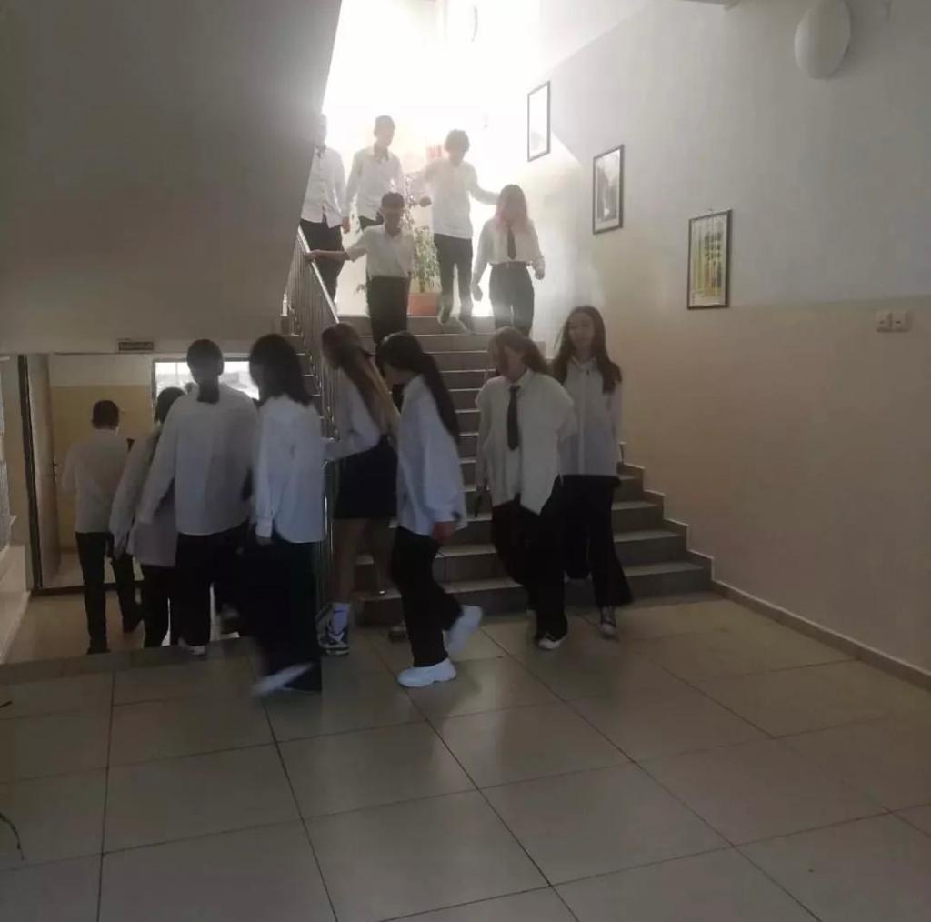 До начала сейсмотренировки учителем НВТП Мамыткановым Н. К. был определён маршрут эвакуации в безопасное место.