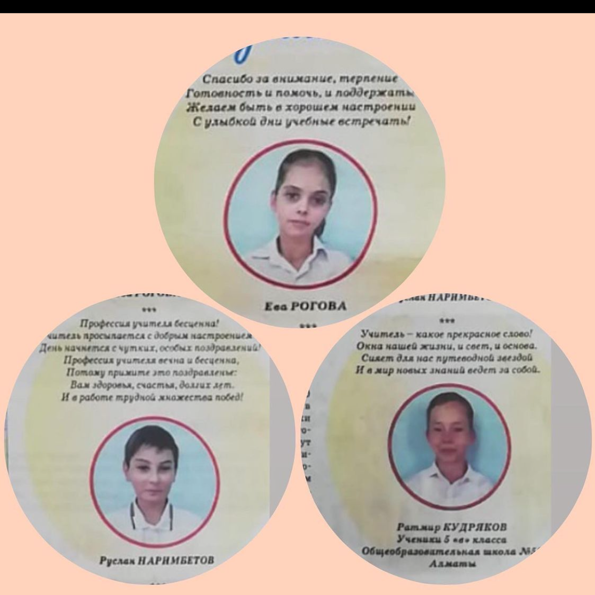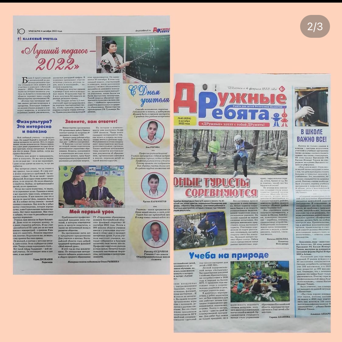 04 октябрь 2022 0 1 2 3 4 5 «Оқу мектебі» жобасы! Проект "Читающая школа"! В рамках проекта «Читающая школа», ученики 5 «В» класса поздравили учителей с Днём учителя своими авторскими мини-стихотворениями, которые были опубликованы в газете «Дружные ребята».
