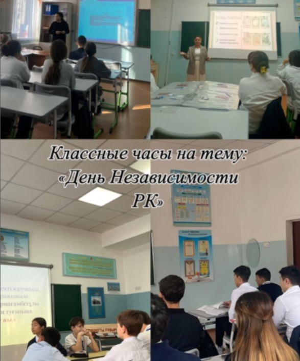 13 декабрь 2024 0 1 2 3 4 5 "Қазақстан Республикасының Тәуелсіздік күні!». Классные часы на тему: «День Независимости Республики Казахстан!». 13.12.2024 г в школе были проведены классные часы на тему: «День Независимости Республики Казахстан!».Цель: воспитание чувства патриотизма, любви к Родине, гордости за историческое прошлое, настоящее и светлое будущее народов Казахстана!