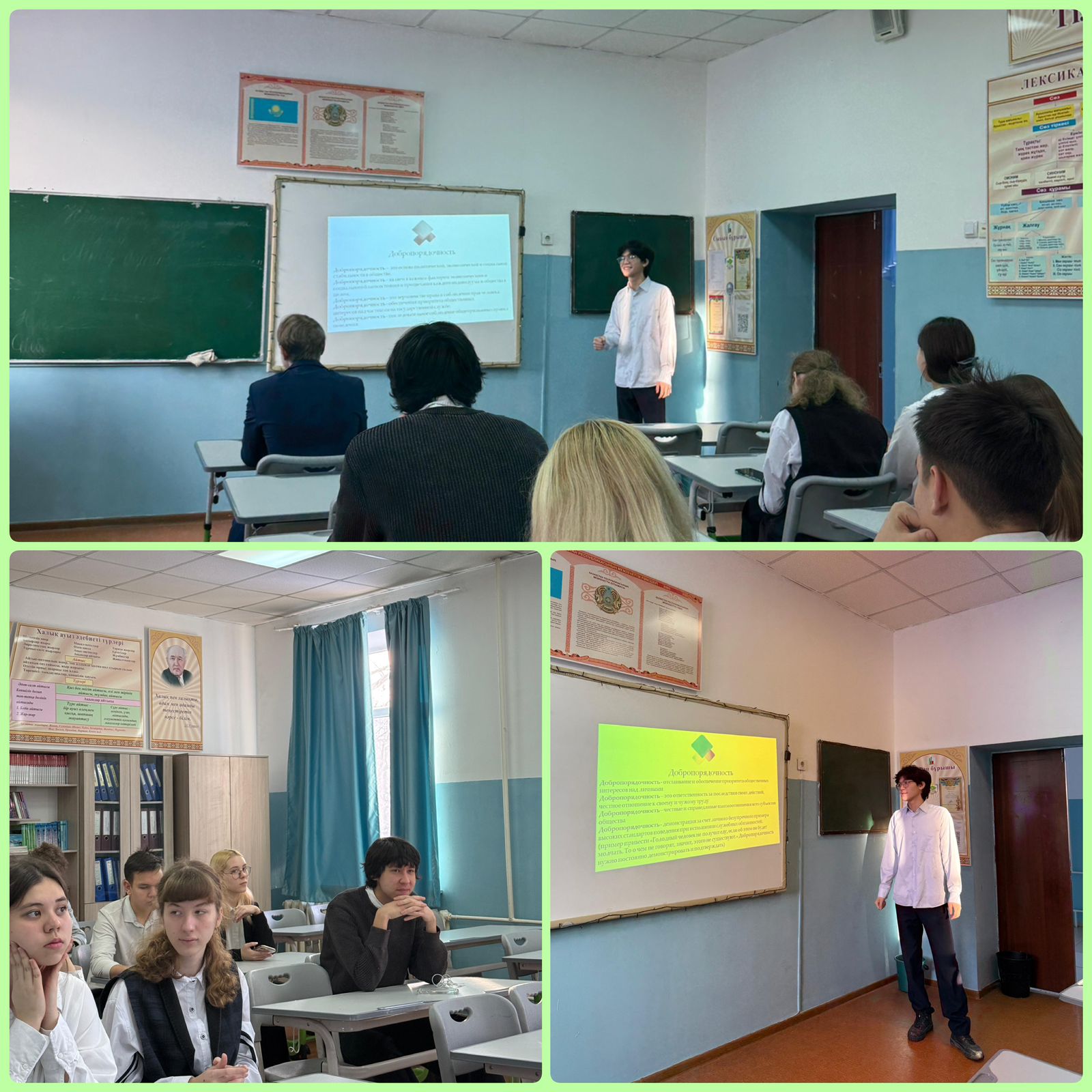 27.01.2025 в 9-11 классах прошел классный час на тему: “Арам мен адал, обал мен сауап ұлтымыздың ұстанымы»/ «Позиция нечестности и честности: благородной и здоровой нации», а также Урок безопасности ( 10 минут)