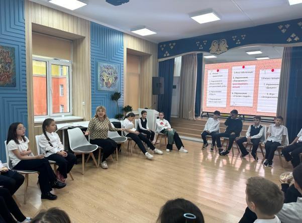 Оқушылармен педагог-психолог Куртыбаева Б.С. "Дұрыс тамақтанудың маңызы" тақырыбында тренинг өткізді. Тренингтің мақсаты — қатысушыларға дұрыс тамақтанудың физикалық және психоэмоционалдық әл-ауқат үшін маңызын түсіндіру. Сабақ барысында теңгерімді тамақтану негіздері, тамақтың өсуге, дамуға және зейін қоюға әсері талқыланды. Қатысушылар фастфудтың, қанттың және газдалған сусындардың зияны туралы біліп, пайдалы мәзір құрастыру бойынша практикалық кеңестер алды. Тренинг интерактивті түрде ойын, викторина және пікірталас элементтерімен өткізілді, бұл алынған білімді бекітіп, салауатты өмір салтына ынталандыруға бағытталды.