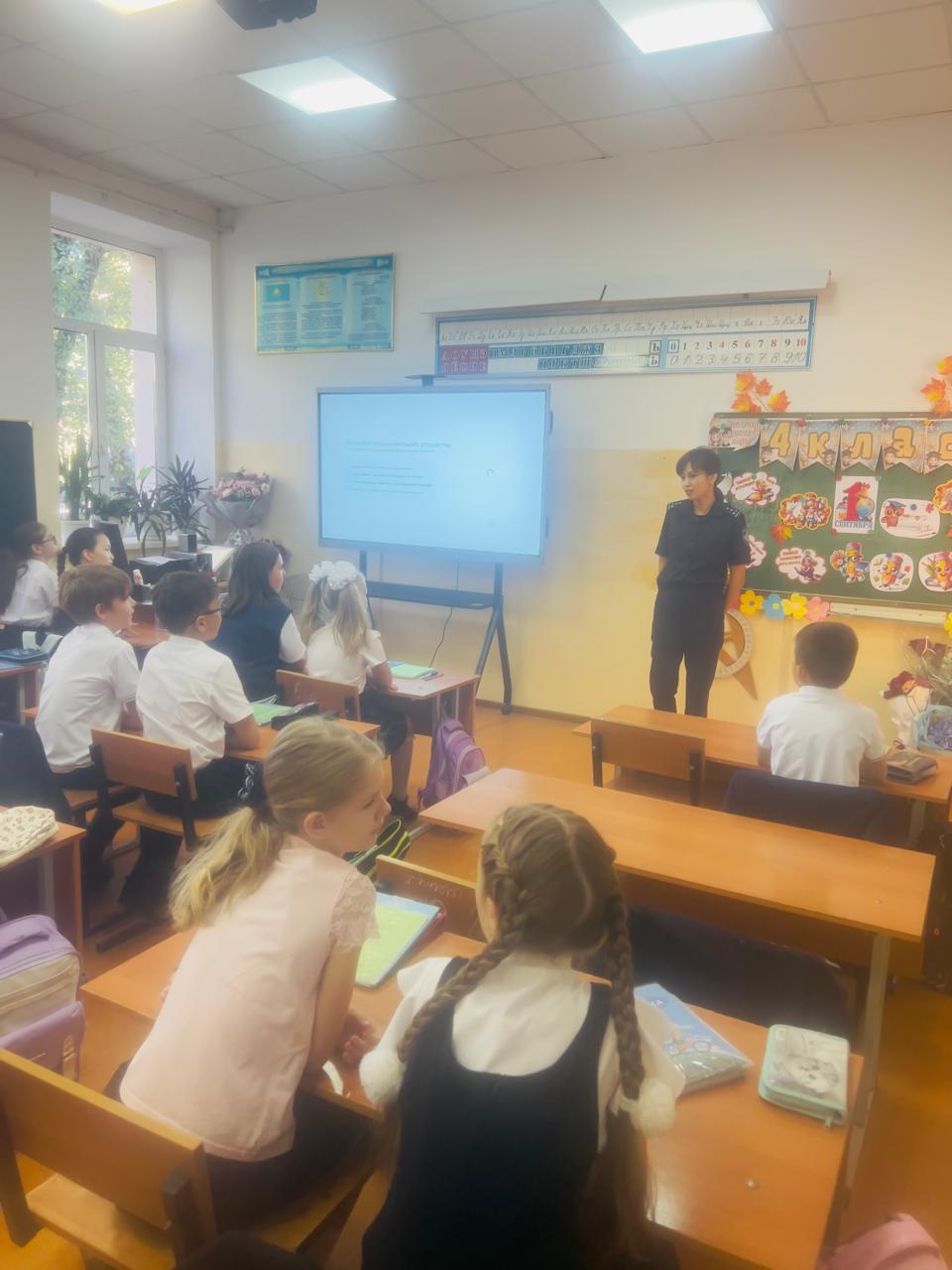 2 сентября 2025 года в КГУ ОШ №55 участковым инспектором по делам несовершеннолетних Ювенальной полиции ОМПС УП Алмалинского района капитаном полиции Акимовой Д.Х. проведена профилактическая беседа с учащимися 3 классов на тему: «Правила дорожного движения», «Безопасность на дороге», «Нахождение ночью на улице»