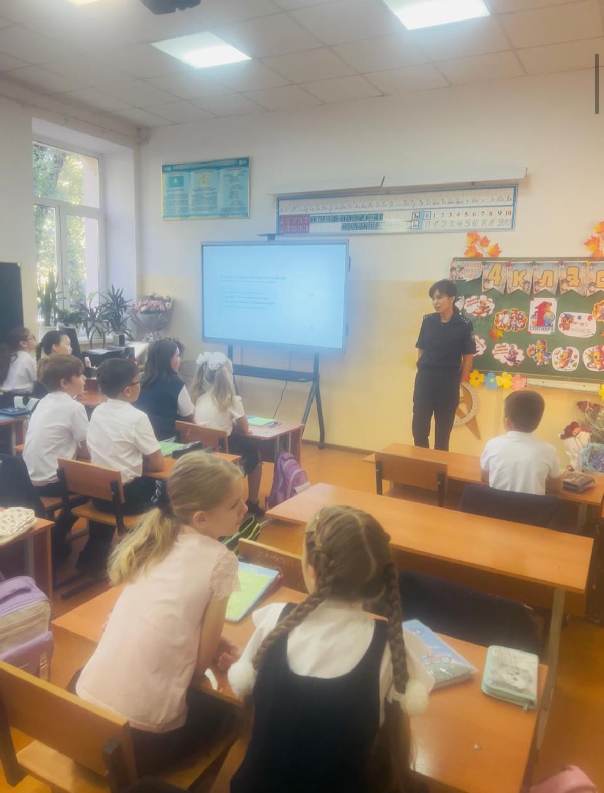 2 сентября 2025 года в КГУ ОШ №55 участковым инспектором по делам несовершеннолетних Ювенальной полиции ОМПС УП Алмалинского района капитаном полиции Акимовой Д.Х. проведена профилактическая беседа с учащимися 3 классов на тему: «Правила дорожного движения», «Безопасность на дороге», «Нахождение ночью на улице»