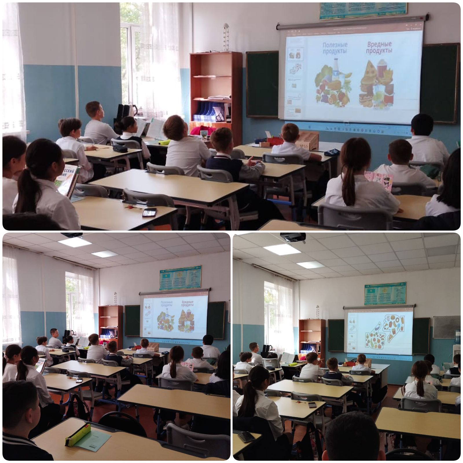 2025 жылғы 6 қазанда№55 жалпы білім беретін мектебінде 1-4 сыныптар арасында «Тамақтану мәдениеті» тақырыбында сынып сағаттары өткізілді. Тамақтанудың негізгі мәселелері, негізгі тағам компоненттерінің сипаттамасы және мектеп оқушыларының рационалды тамақтану принциптері талқыланды.