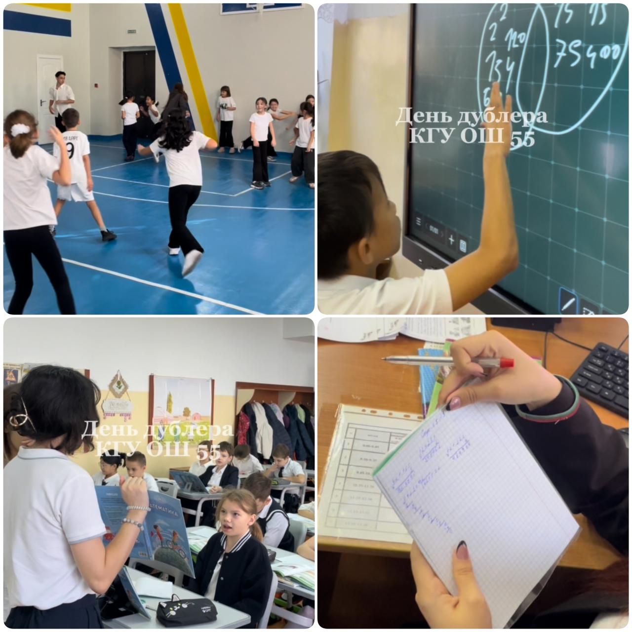 02 октябрь 2025 0 1 2 3 4 5 Дублер күні!. День дублёра! в КГУ ОШ 55 прошёл День дублёра!Ученики попробовали себя в роли учителей и сотрудников школы.Было необычно, весело и очень поучительно! 👩🏫👨🎓Спасибо всем участникам за креатив, смелость и отличное настроение! 💫
