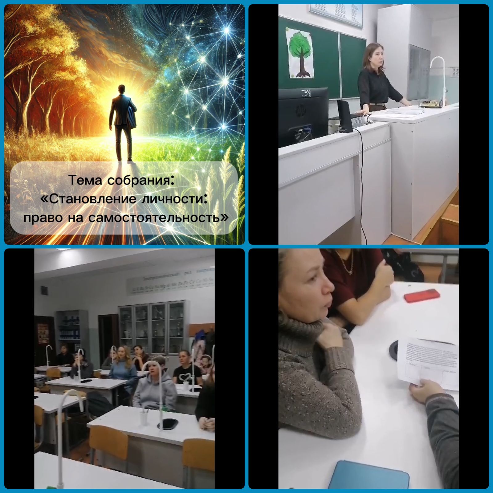 КГУ ОШ №55 21 января 2025 г. прошло собрание ЦППР на тему: «Становление личности: право на самостоятельность». Собрание прошло среди родителей учащихся 8 классов, на котором выступили Ермаханова А.А., Гилязова Э.Н.