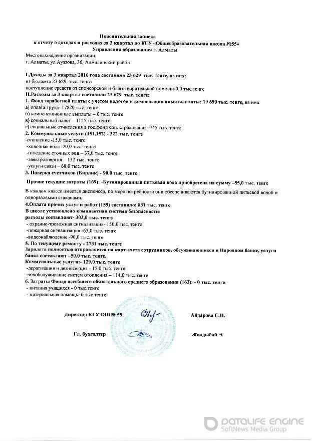 » Отчет о доходах и расходах за 3 квартал 2016 года по КГУ ОШ №55