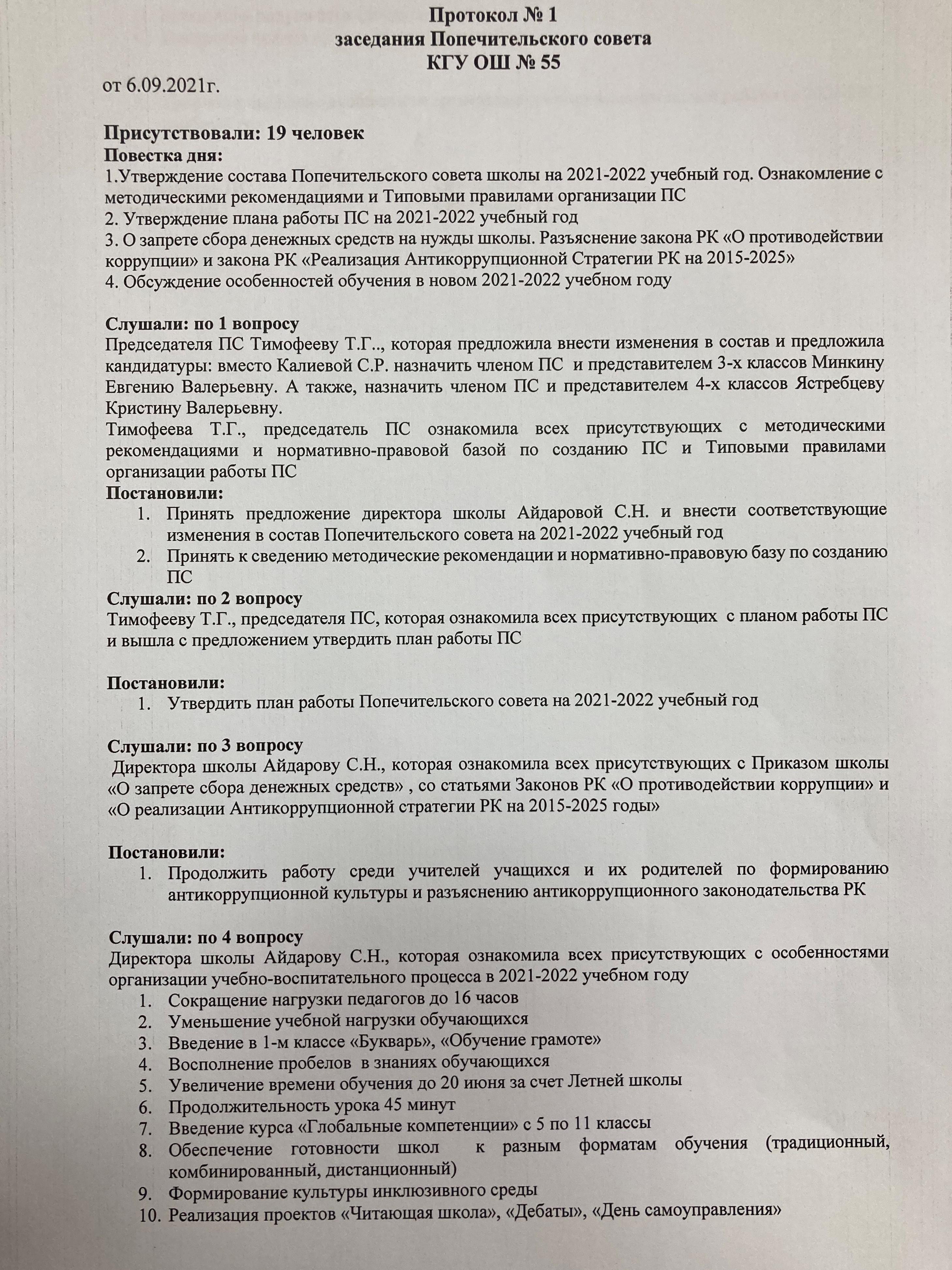 06 сентябрь 2021 0 1 2 3 4 5 Қамқоршылық кеңес отырысының 2021 жылғы 6 қыркүйектегі № 1 хаттамасы Протокол №1 заседания Попечительского совета от 6.09.2021 г.