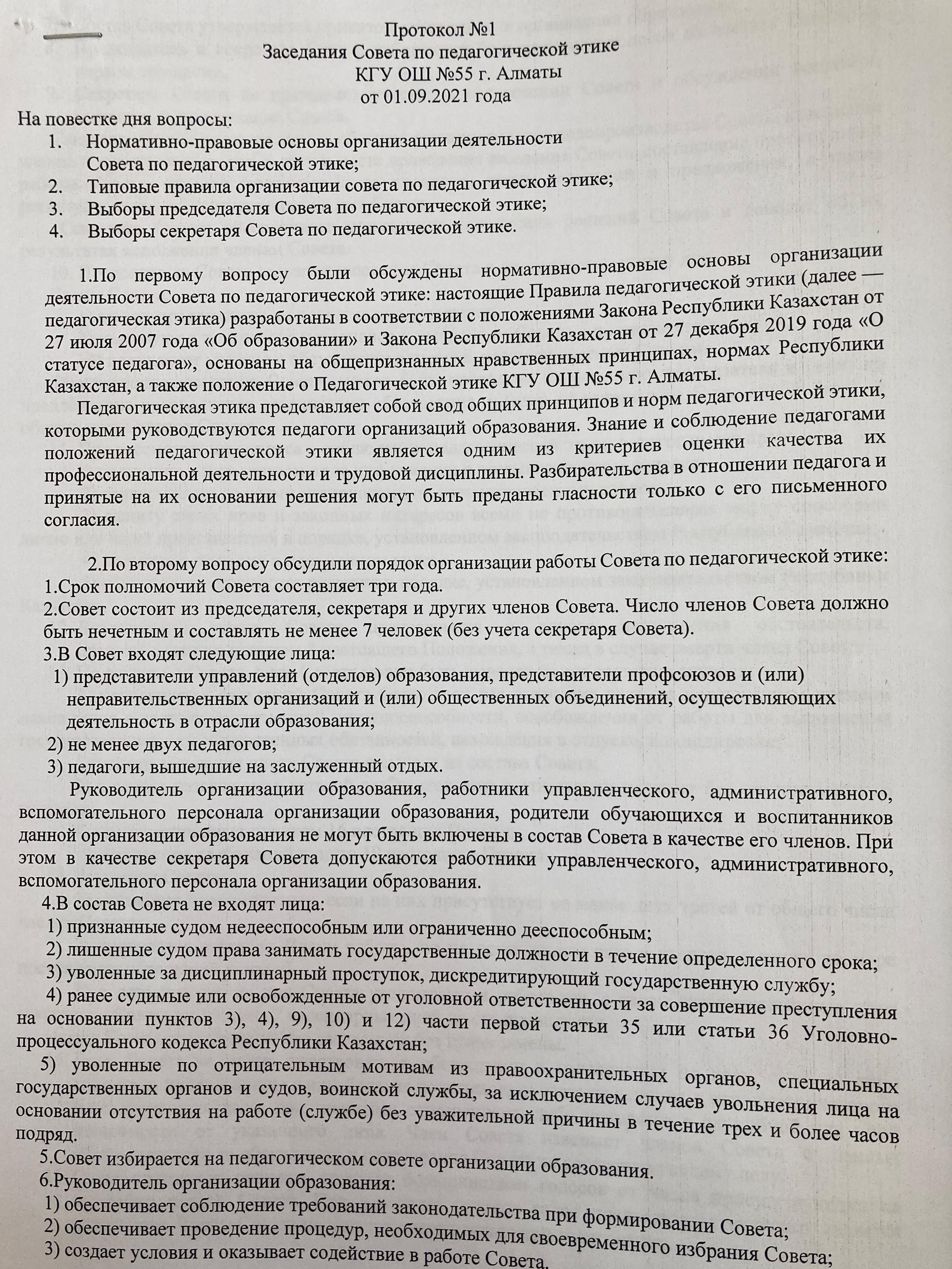 04 сентябрь 2021 0 1 2 3 4 5 Хаттама №1 педагогикалық әдеп жөніндегі кеңес отырысы Протокол №1 Заседания Совета по педагогической этике Протокол №1 Заседания Совета по педагогической этике
