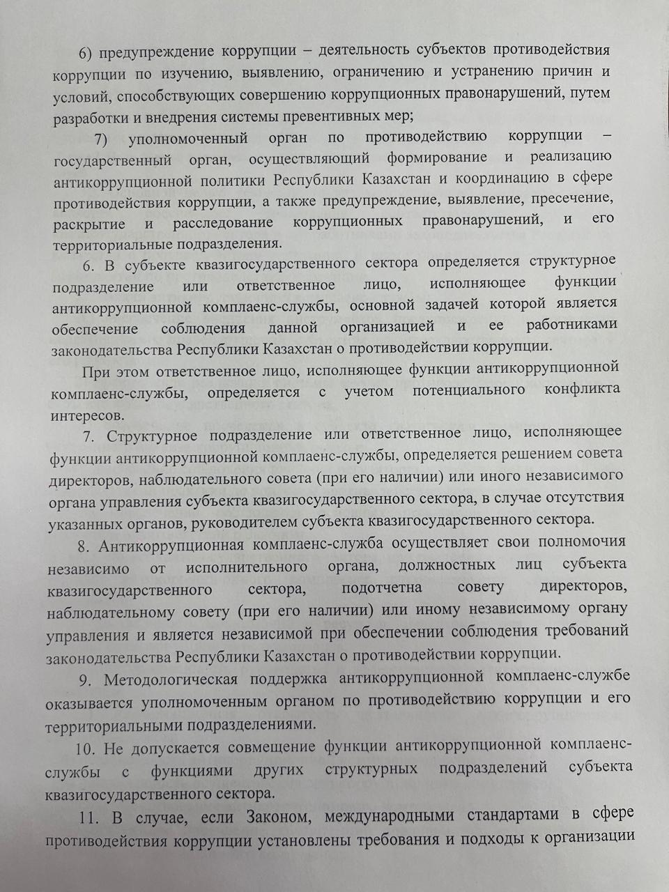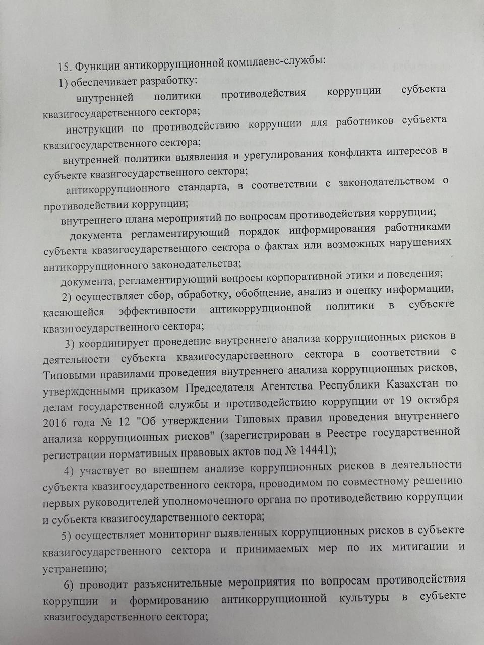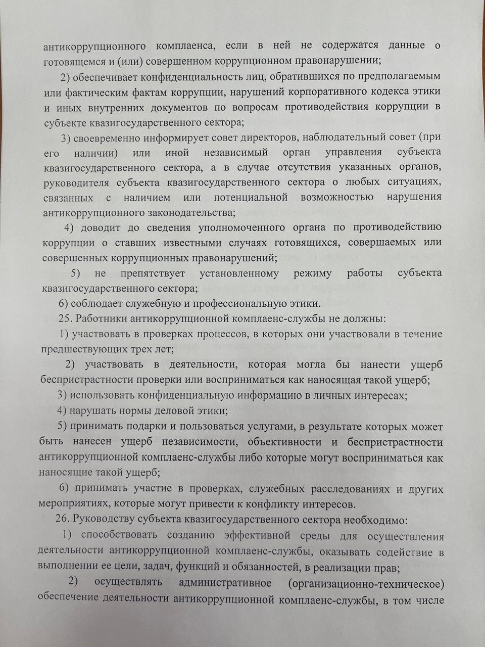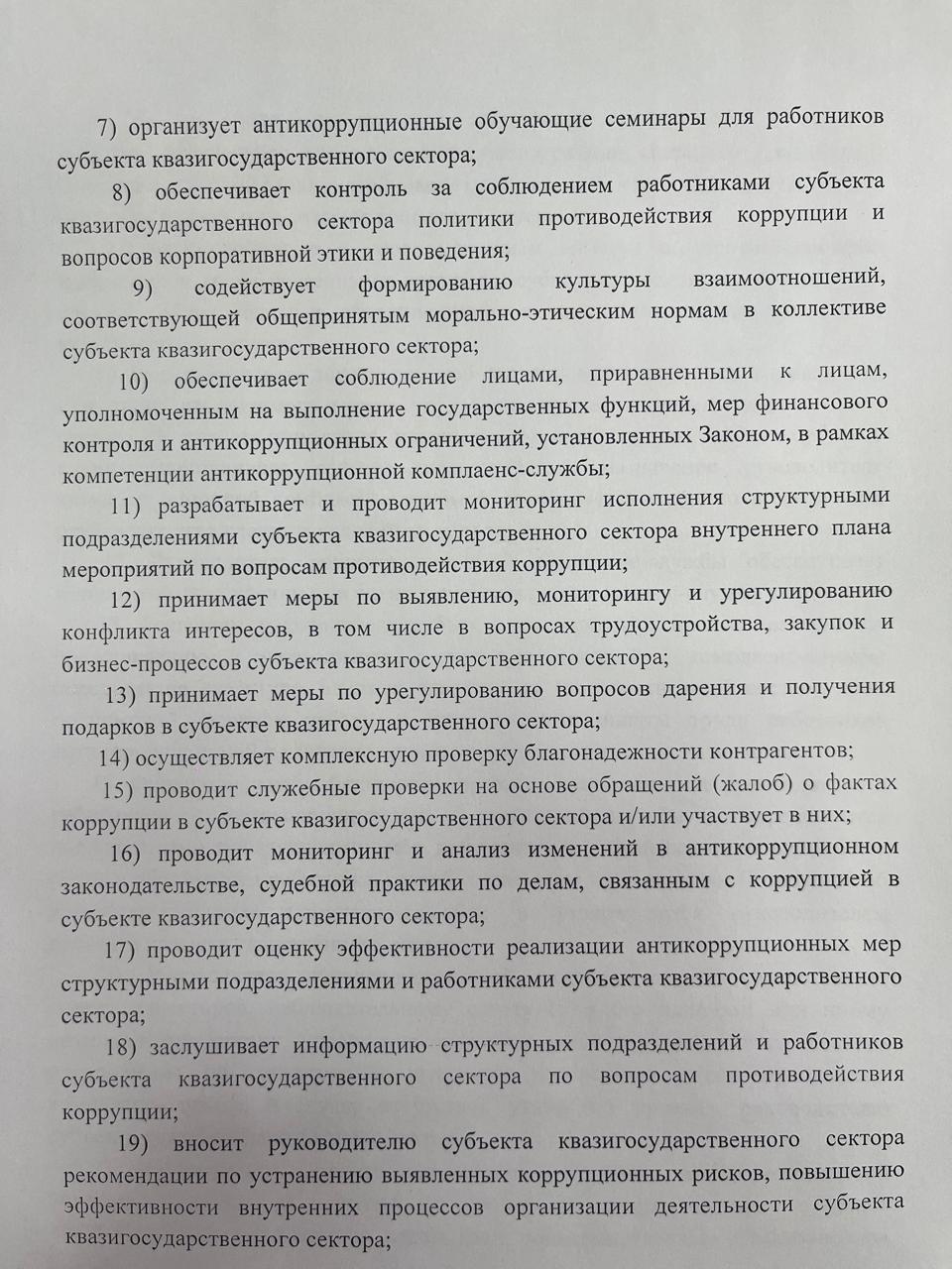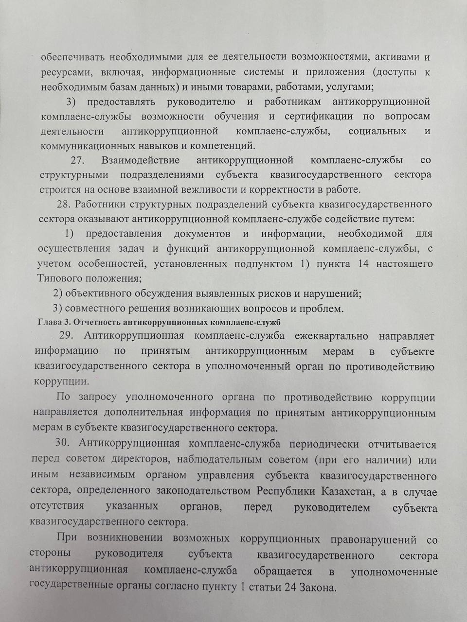 Квазимемлекеттік сектор субъектілерінде сыбайлас жемқорлыққа қарсы қызмет көрсету бойынша үлгілік ереже. Типовое положение об антикоррупционных коплаенс -службах в субъектах квазигосударственного сектора