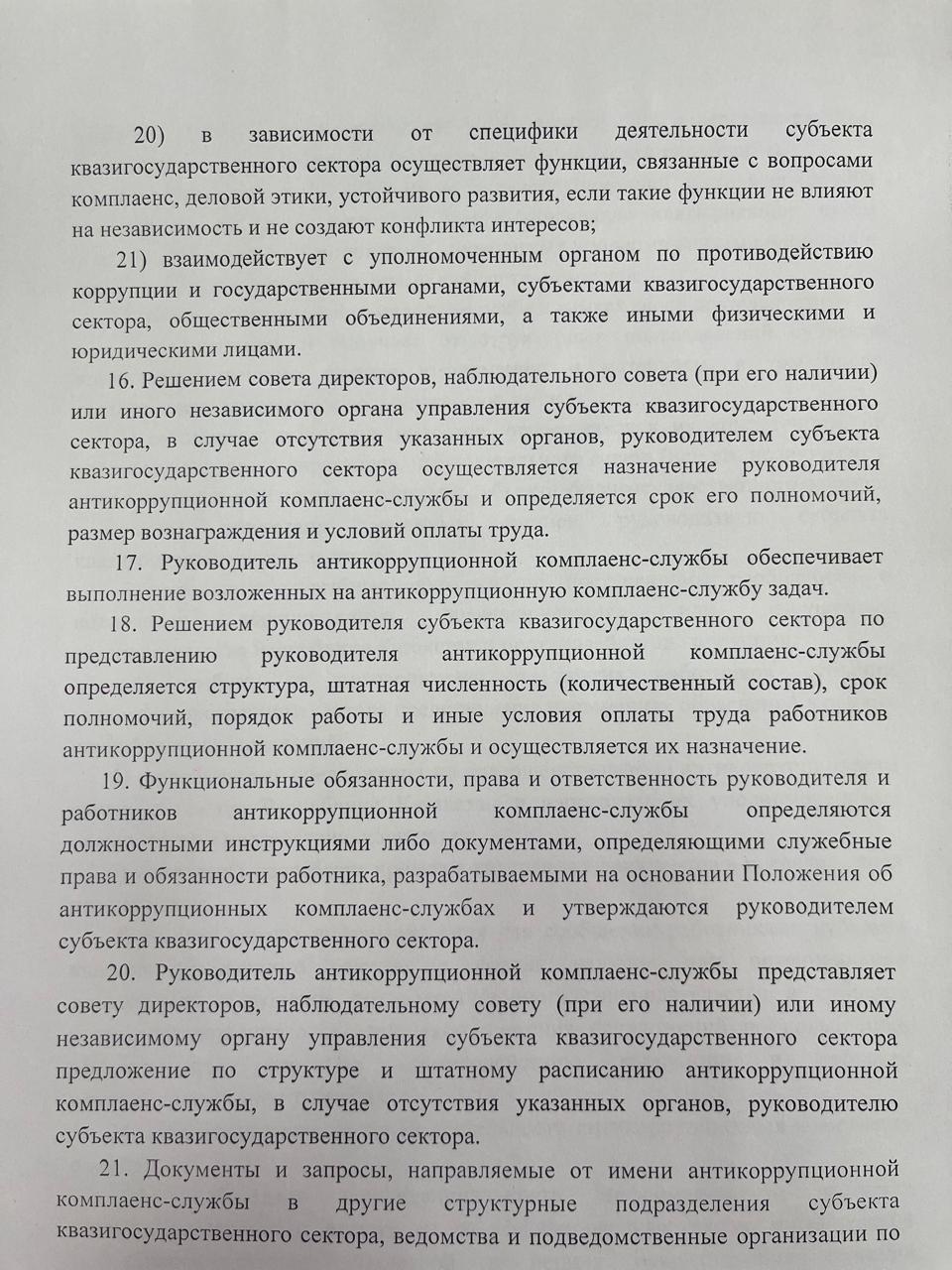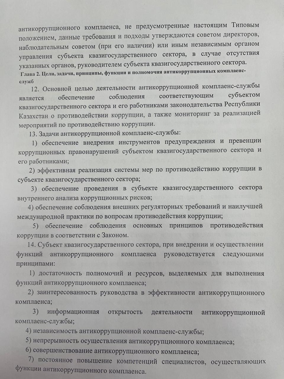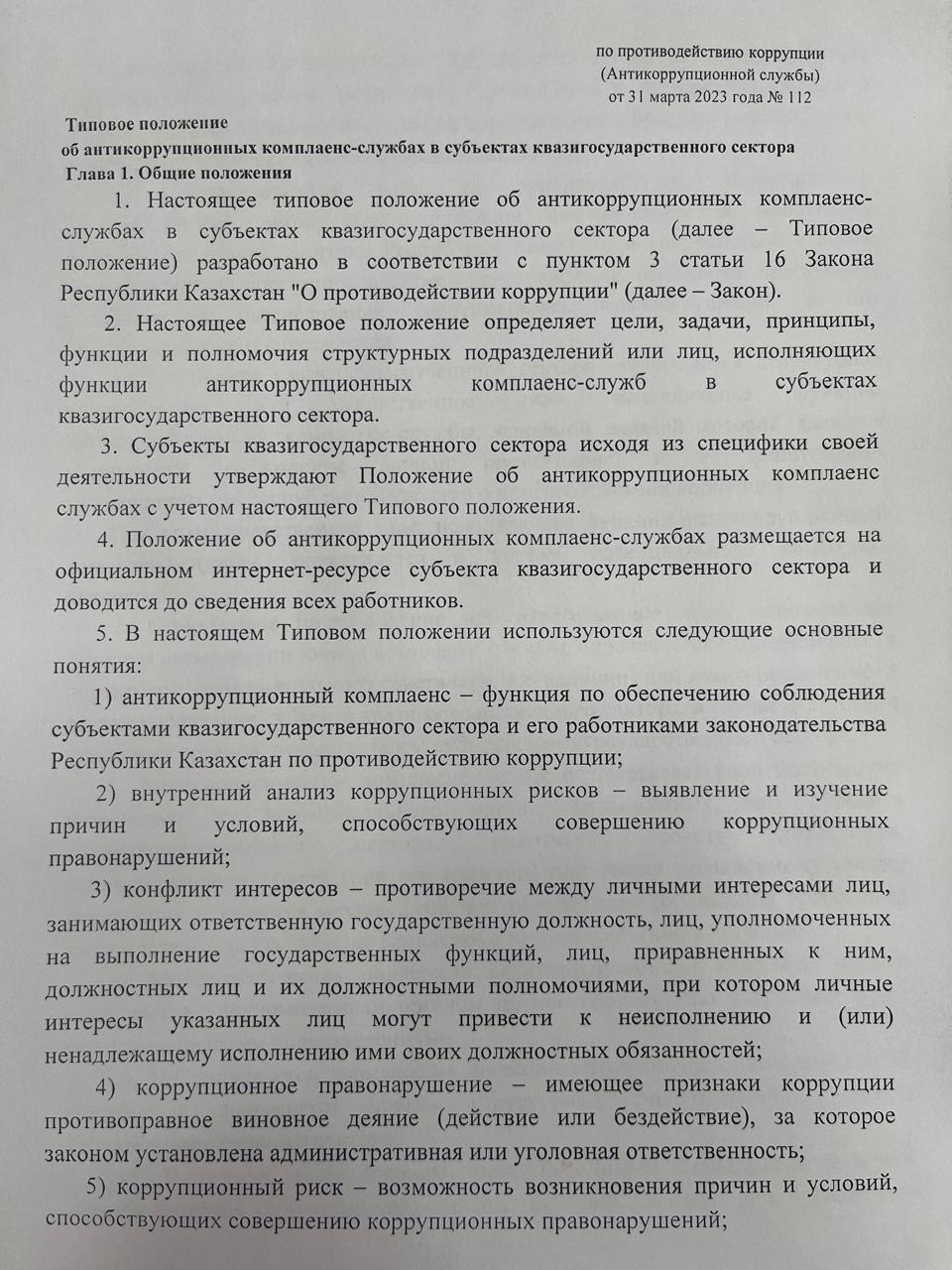 Типовое положение об антикоррупционных коплаенс -службах в субъектах квазигосударственного сектора