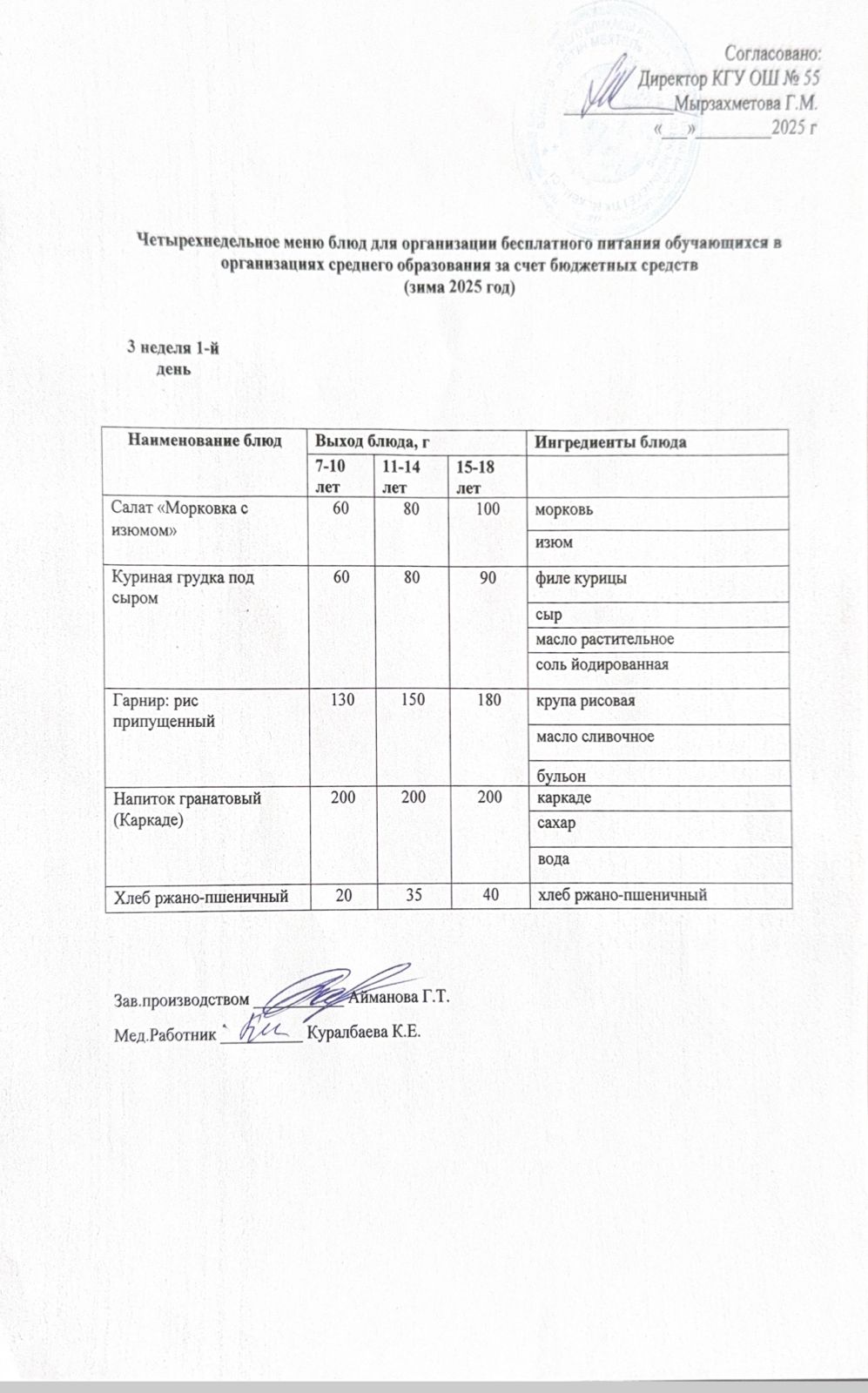 15 декабрь 2025 0 1 2 3 4 5 3 апта 1 күн. Тегін тамақтануды ұйымдастыруға арналған тағамдар мәзірі (қыс). 3 неделя 1 день. Меню блюд для организации бесплатного питания (зима 2025 год)