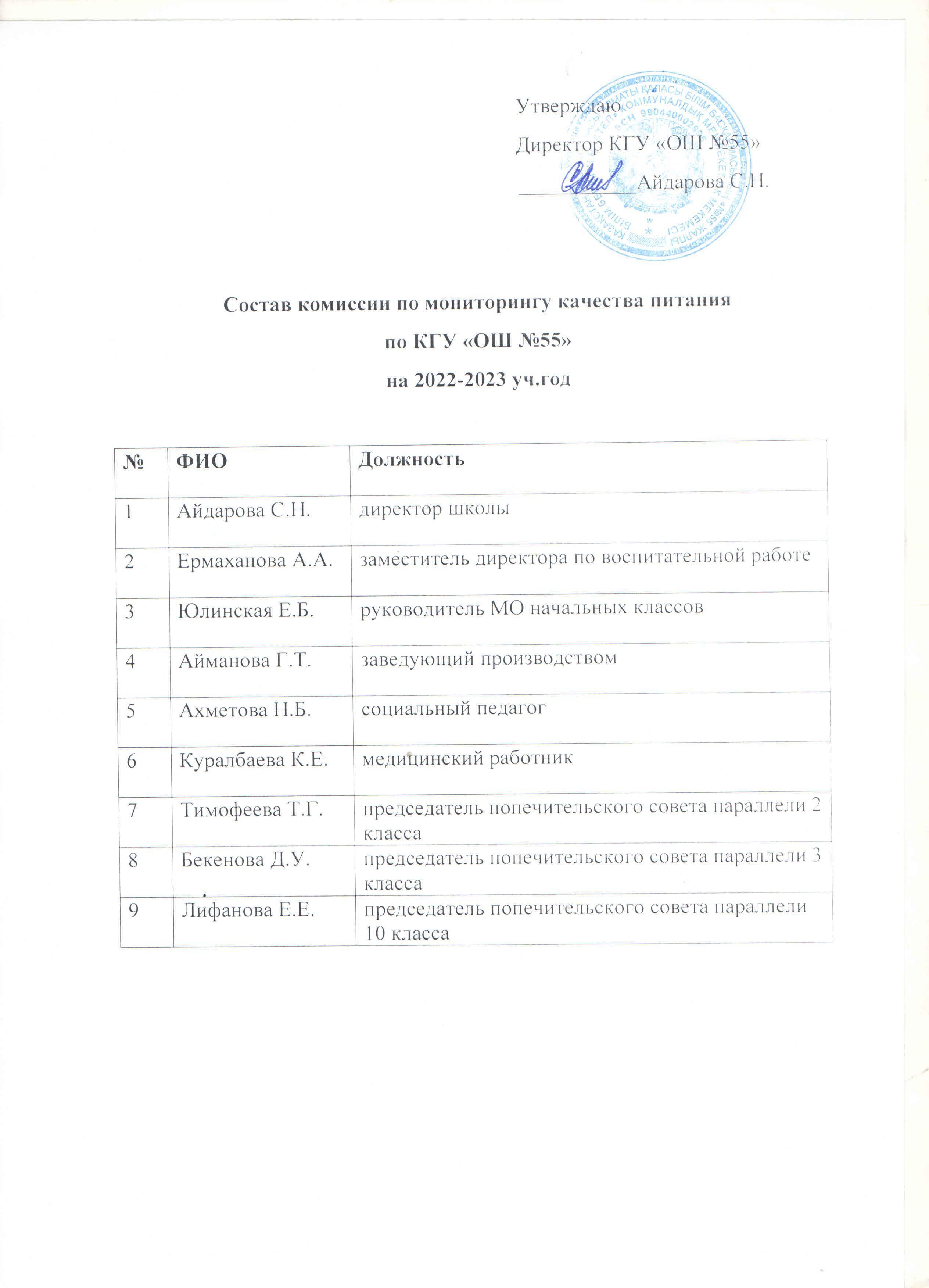 01 сентябрь 2022 0 1 2 3 4 5 2022-2023 оқу жылына арналған тамақтану сапасының мониторинг жөніндегі комиссияның құрамы. Состав комиссии по мониторингу качества питания на 2022-2023 уч.год