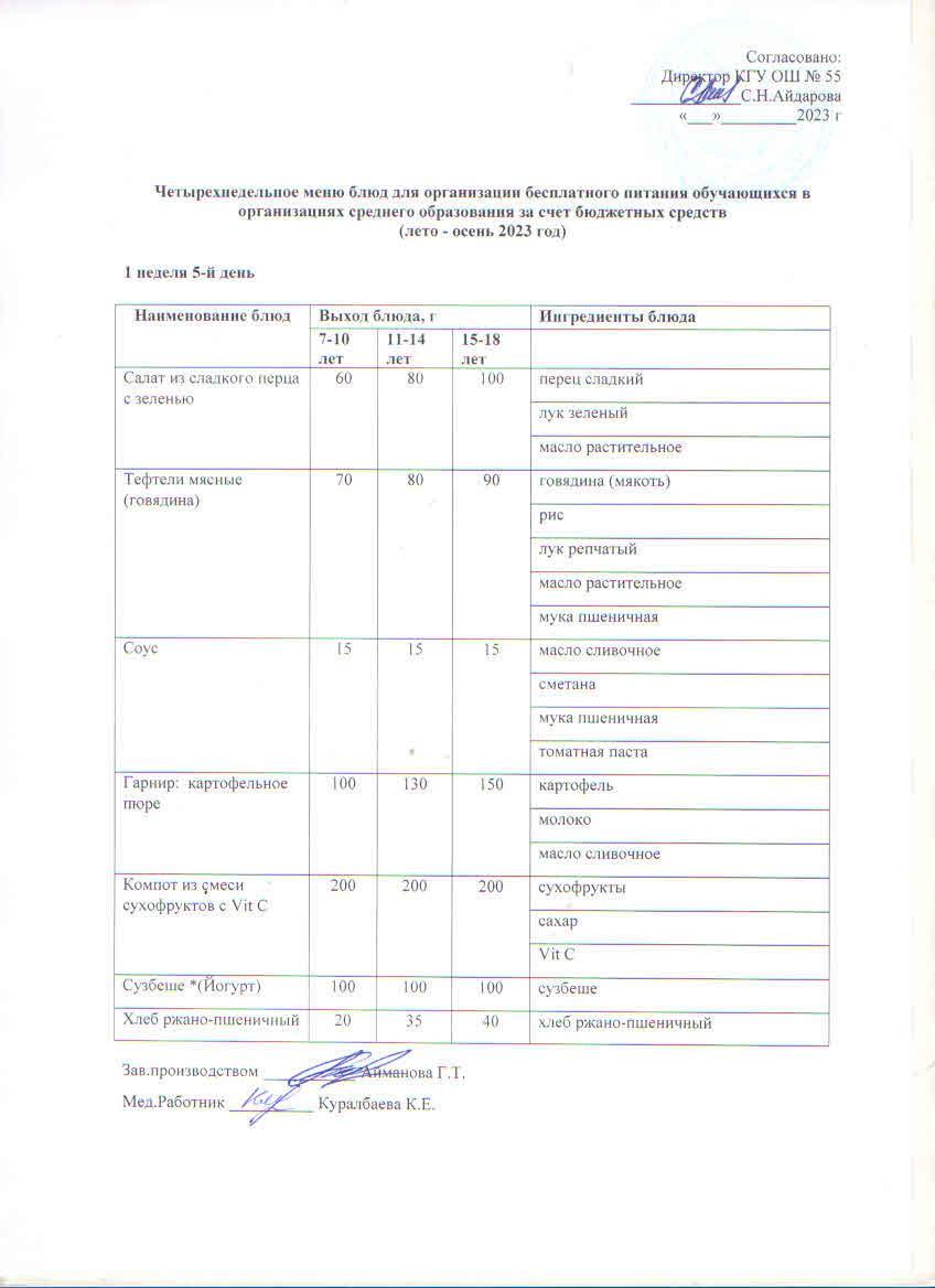 08 сентябрь 2023 0 1 2 3 4 5 1 апта 5 күн. Тегін тамақтануды ұйымдастыруға арналған тағамдар мәзірі (жаз - күз). 1 неделя 5 день. Меню блюд для организации бесплатного питания (лето-осень 2023 год)