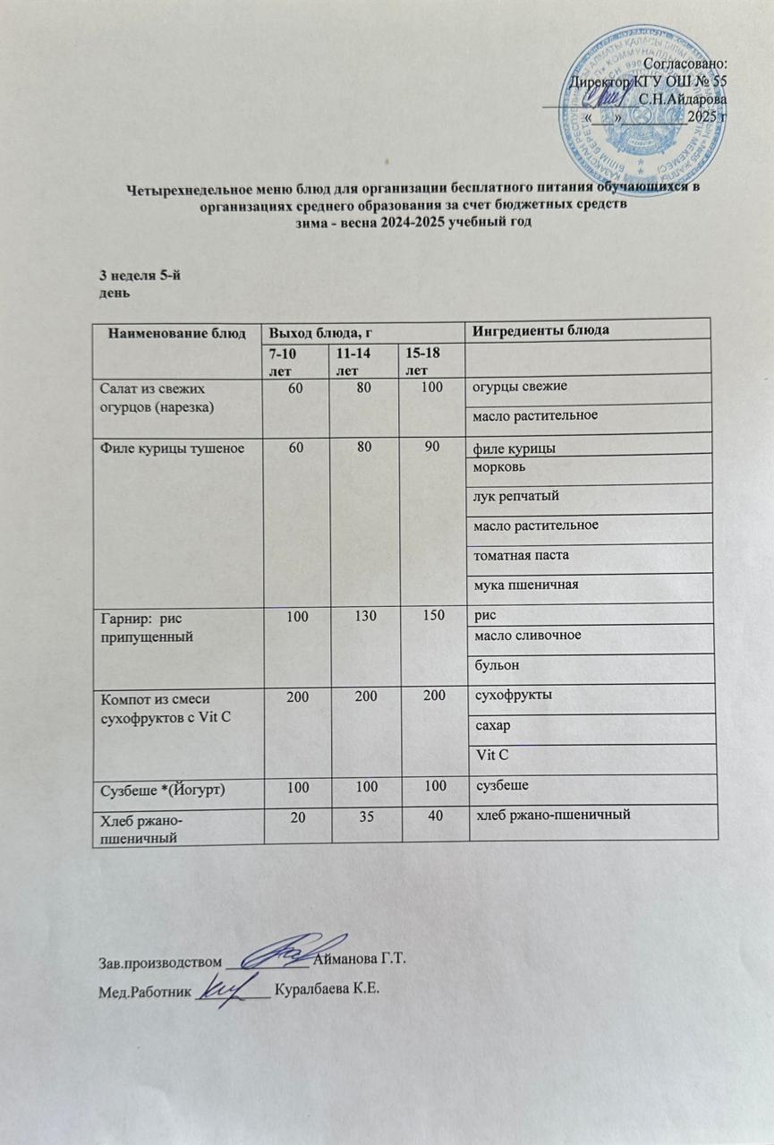 18 апрель 2025 0 1 2 3 4 5 3 апта 5 күн. Тегін тамақтануды ұйымдастыруға арналған тағамдар мәзірі (қыс-көктем). 3 неделя 5 день. Меню блюд для организации бесплатного питания (зима-весна 2025 год)